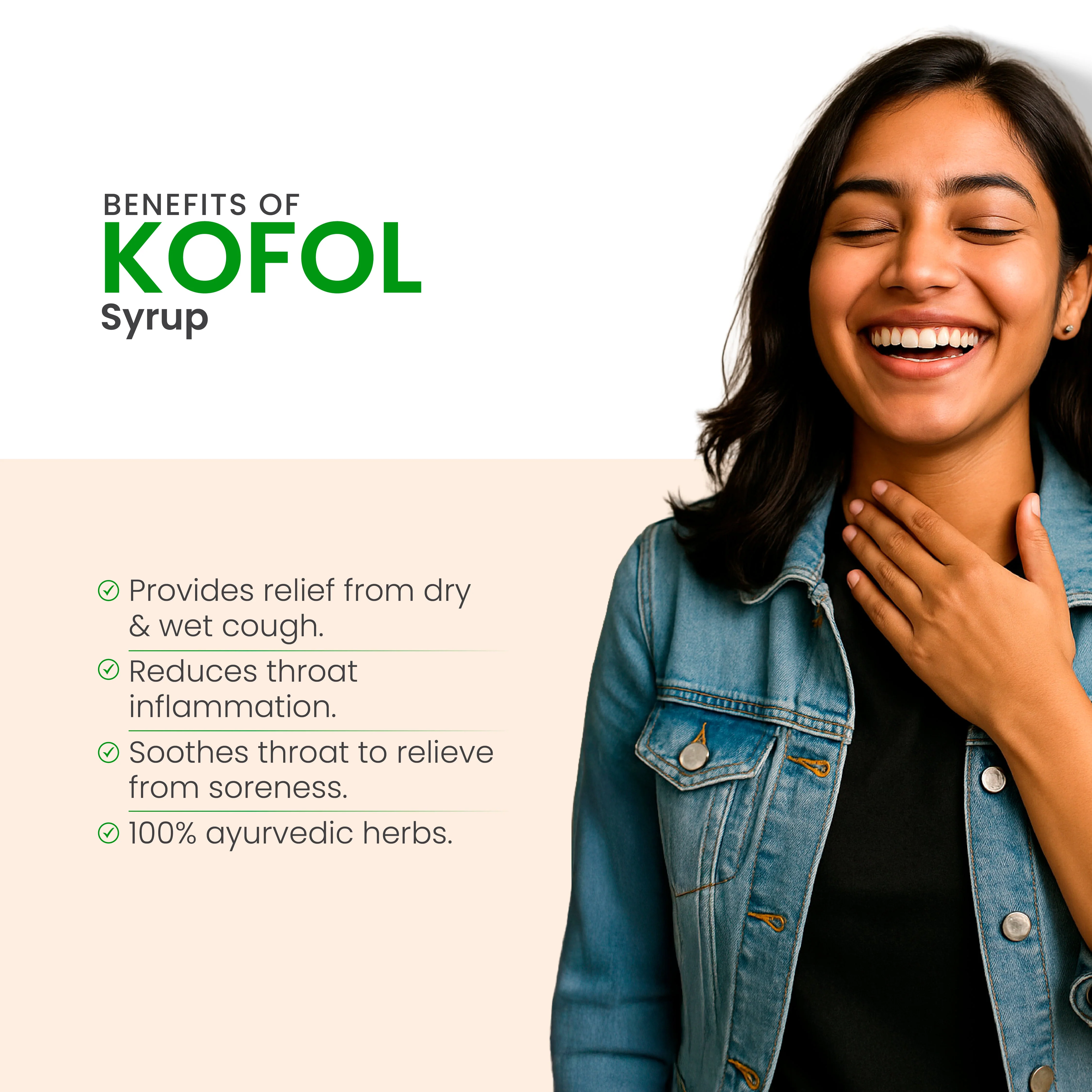 - Complete Support for Dry & Wet Cough : Unlike regular syrups that only target one type of cough, Kofol acts as a holistic cough syrup for wet & dry cough by helping loosen phlegm and clearing excess mucus naturally.
